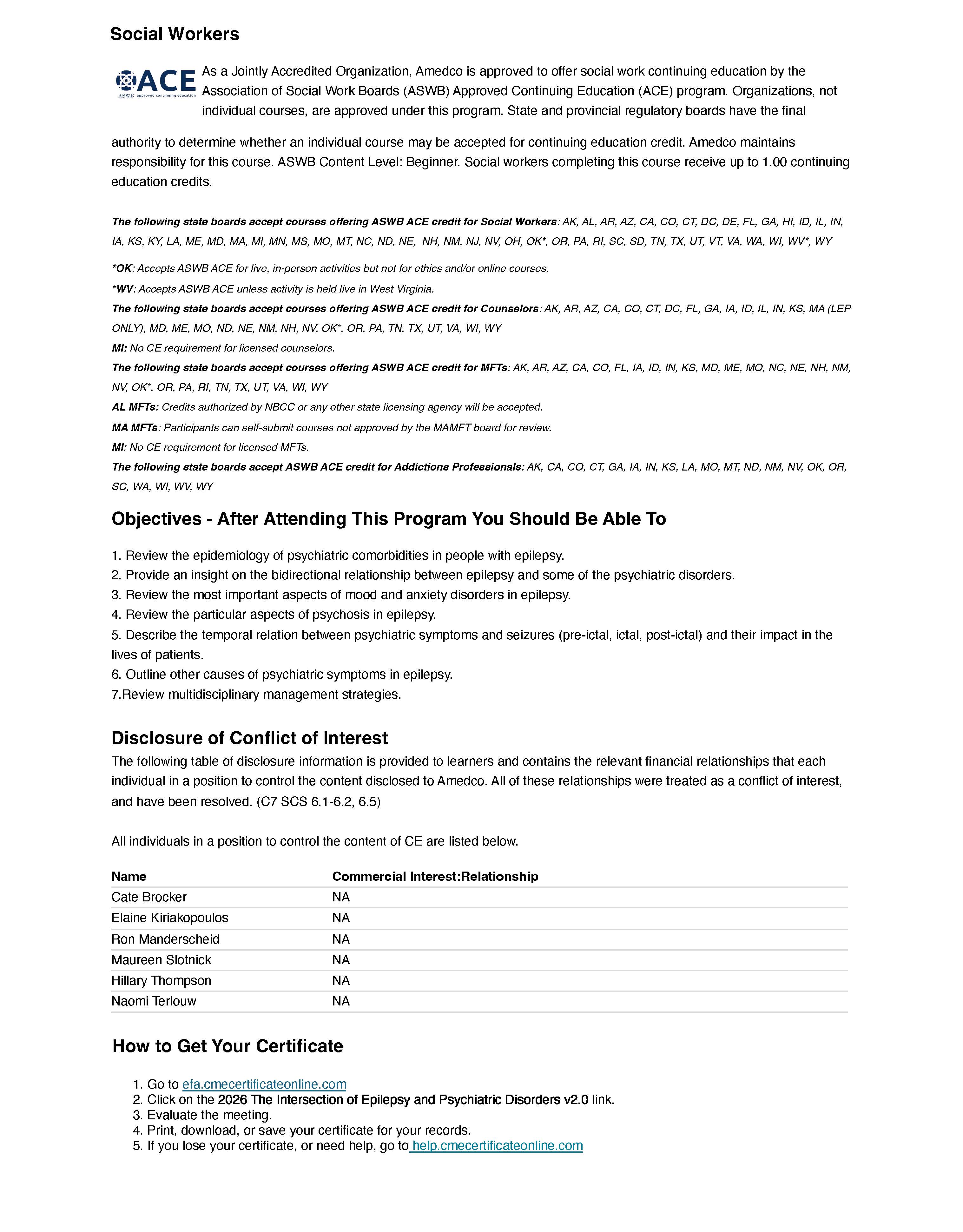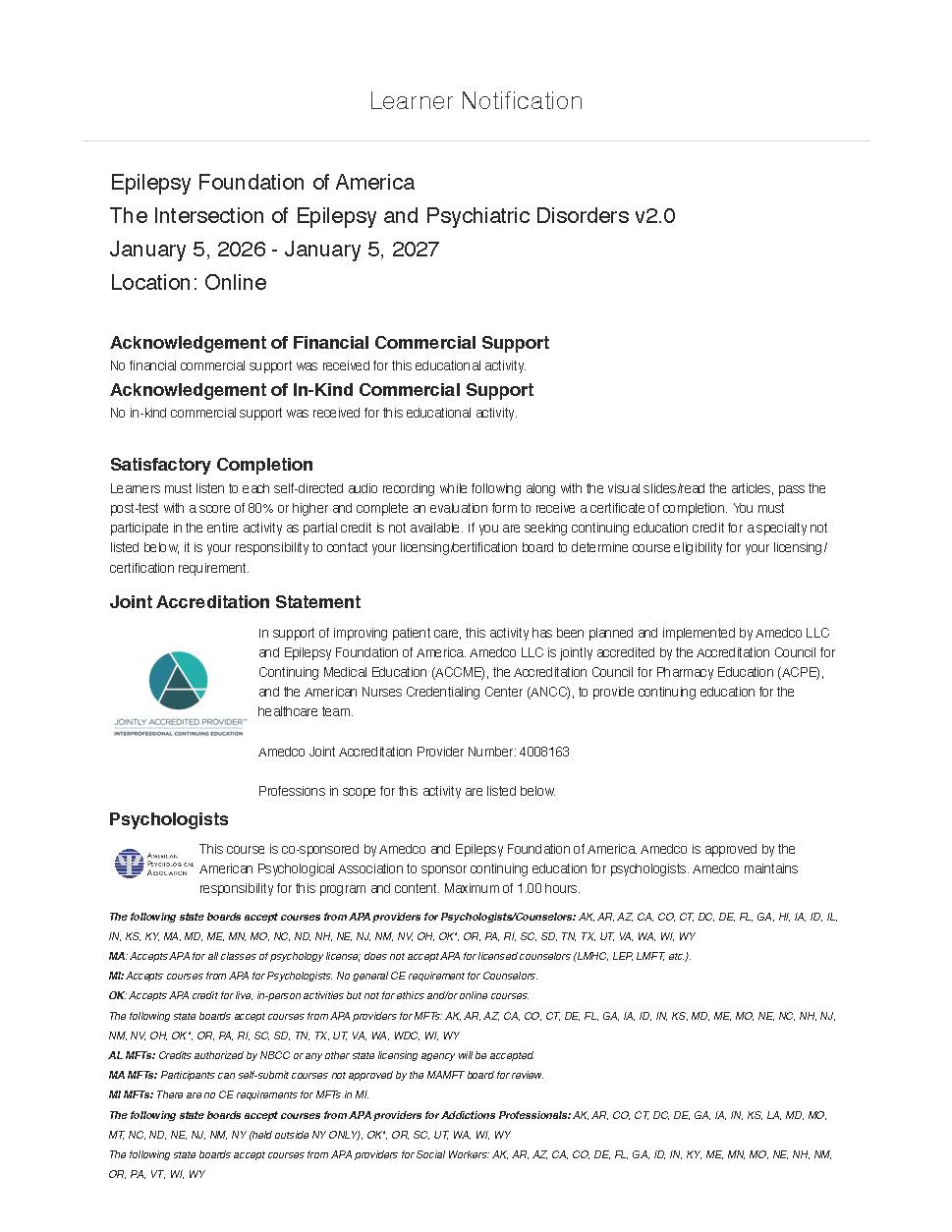Yes. This course offers jointly accredited continuing education for multiple healthcare and behavioral health professions. The activity is jointly provided by the Epilepsy Foundation of America and Amedco LLC, a Jointly Accredited Provider recognized by: